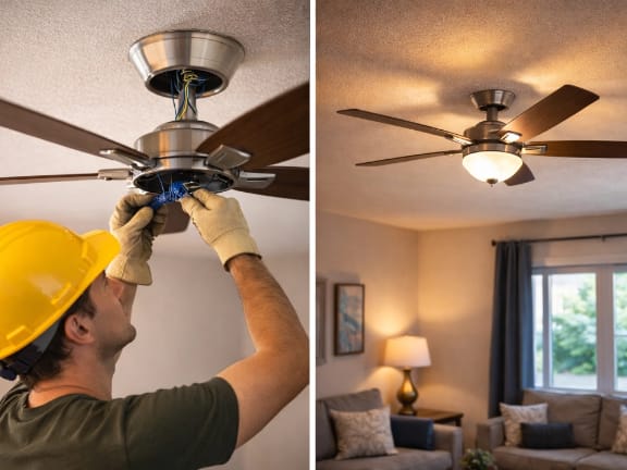 Fixtures, fans, switches, indoor/outdoor lighting—clean installs that look great.